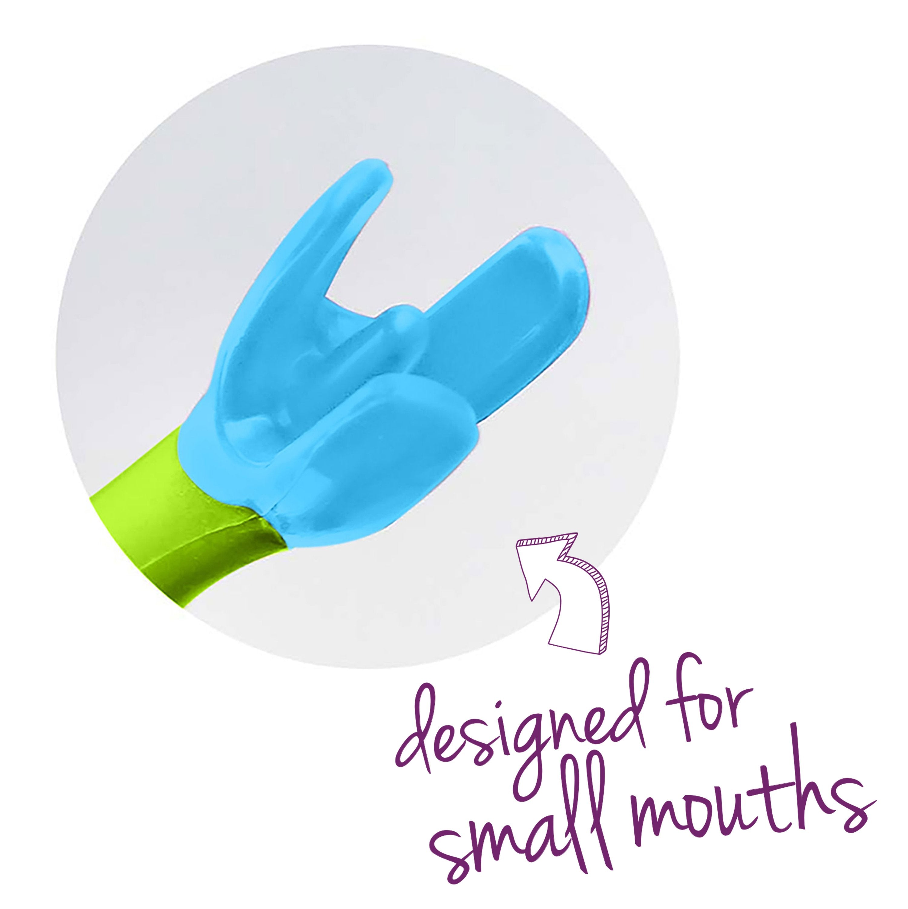 - Unique flork™ prongs designed to fit little mouths, assisting kids to safely pierce and lift food
