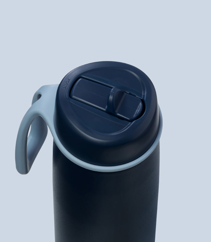 - Flip top lid for free-flow drinking with stainless steel straw