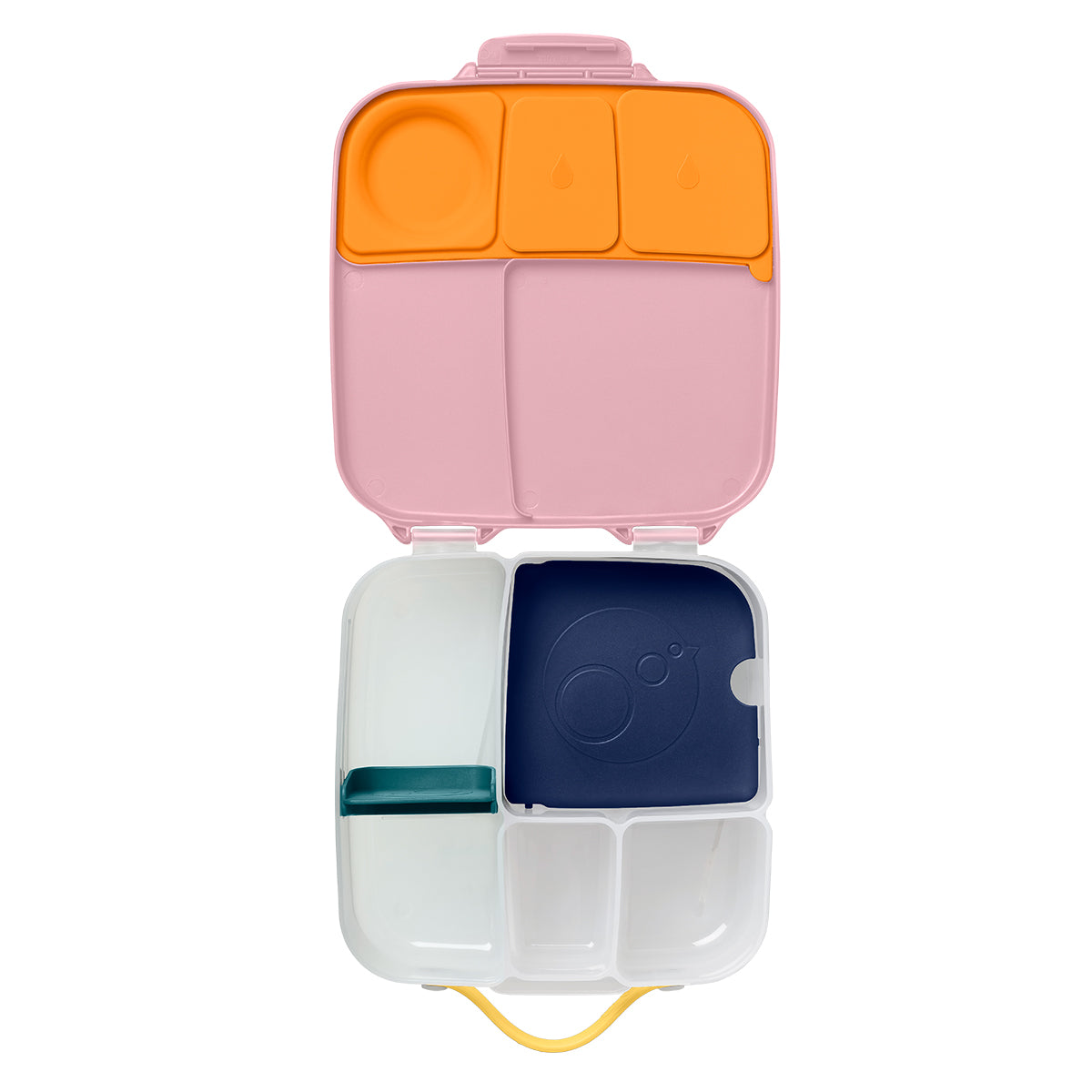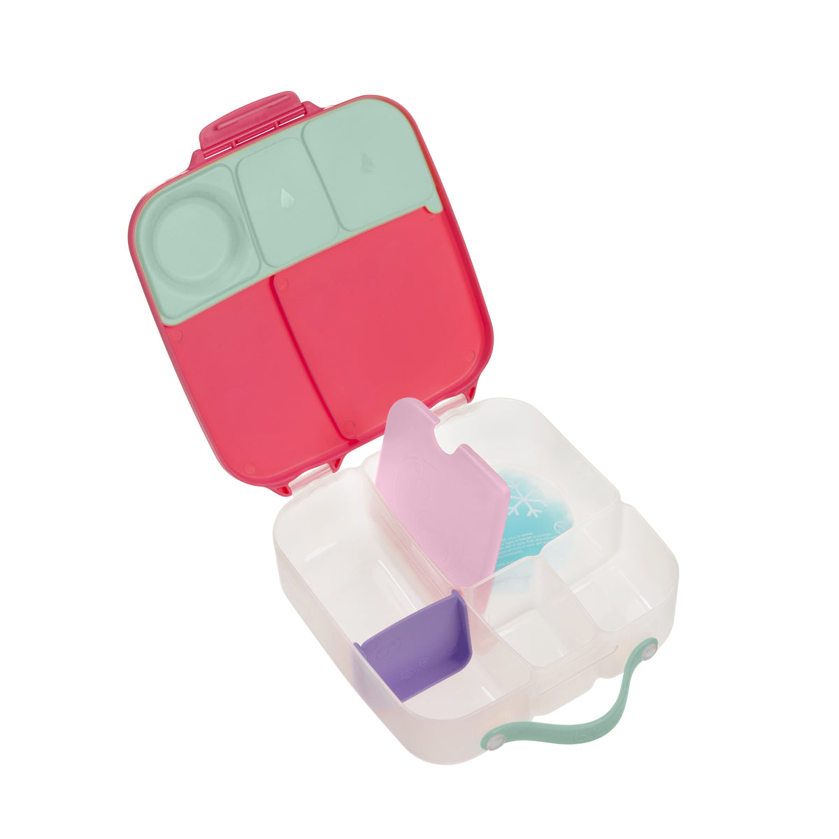 - Gel cooler pack sits underneath sandwich tray to keep food cooler for longer