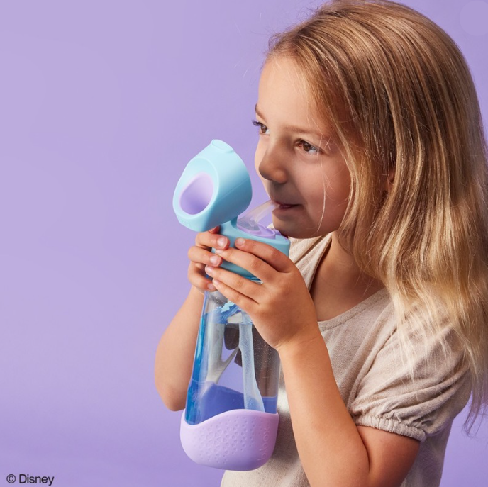 The ergonomic triangular shape is designed specifically for little hands, making it easier for kids to grip. Easy push button pops open the lid, keeping straw tops hygienic when closed. Spill-proof bite valve straw top prevents accidental spills.