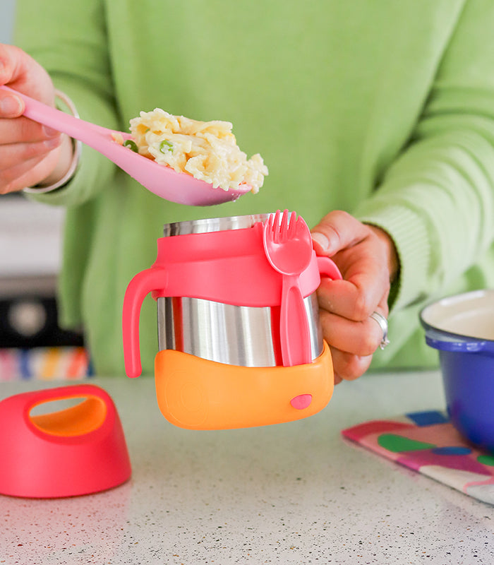 The insulated food jar keeps food at the perfect temperature for hours, whether kids prefer warm pasta for lunch or cold, refreshing fruit and yoghurt.