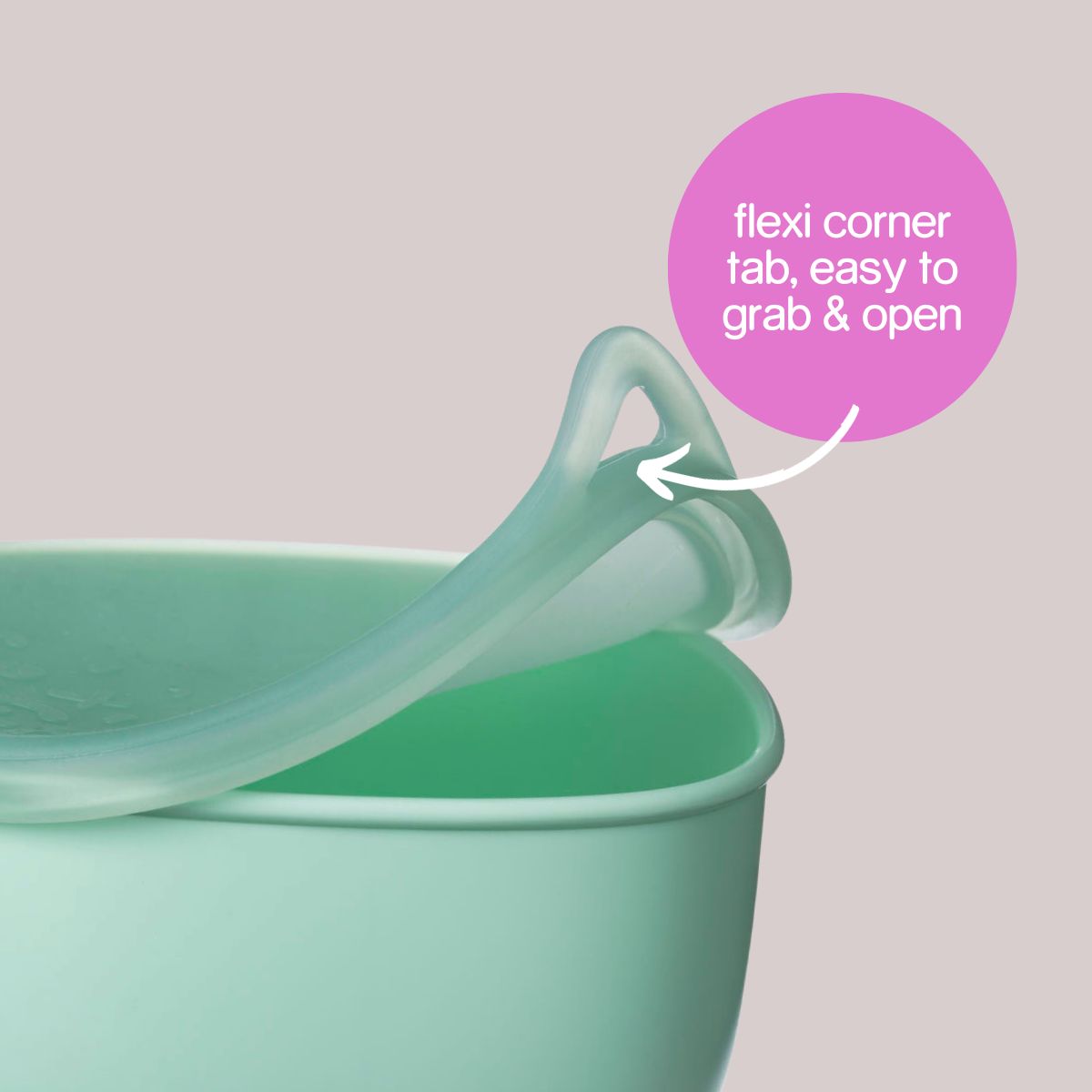 • Flexible corner tab makes removing from lunchbox and opening lid easy for small hands