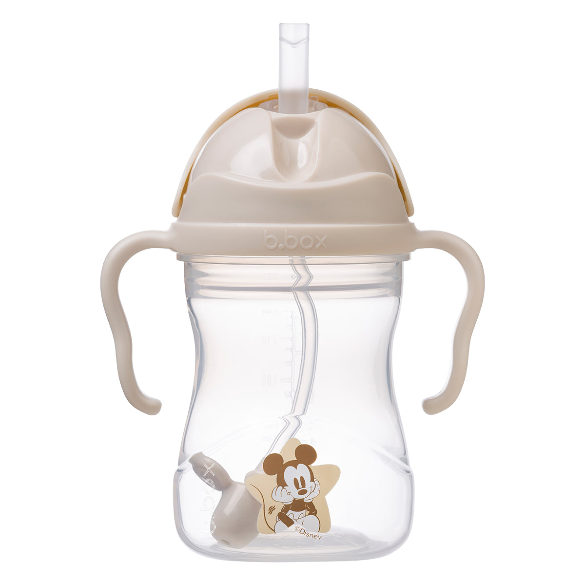 New Mickey and Minnie sippy cups bring a sprinkle of Disney magic! Our award-winning sippy cup features an innovative weighted straw that adapts to any angle, preventing leaks with a two-way valve, even with warm liquids. The ideal transition from bottle/breastfeeding to cup it supports independent drinking, allowing tots to drink to the last drop. With easy-grip handles and a flip-top lid, it's perfect for home or on the go. Available in soft pastel colours.