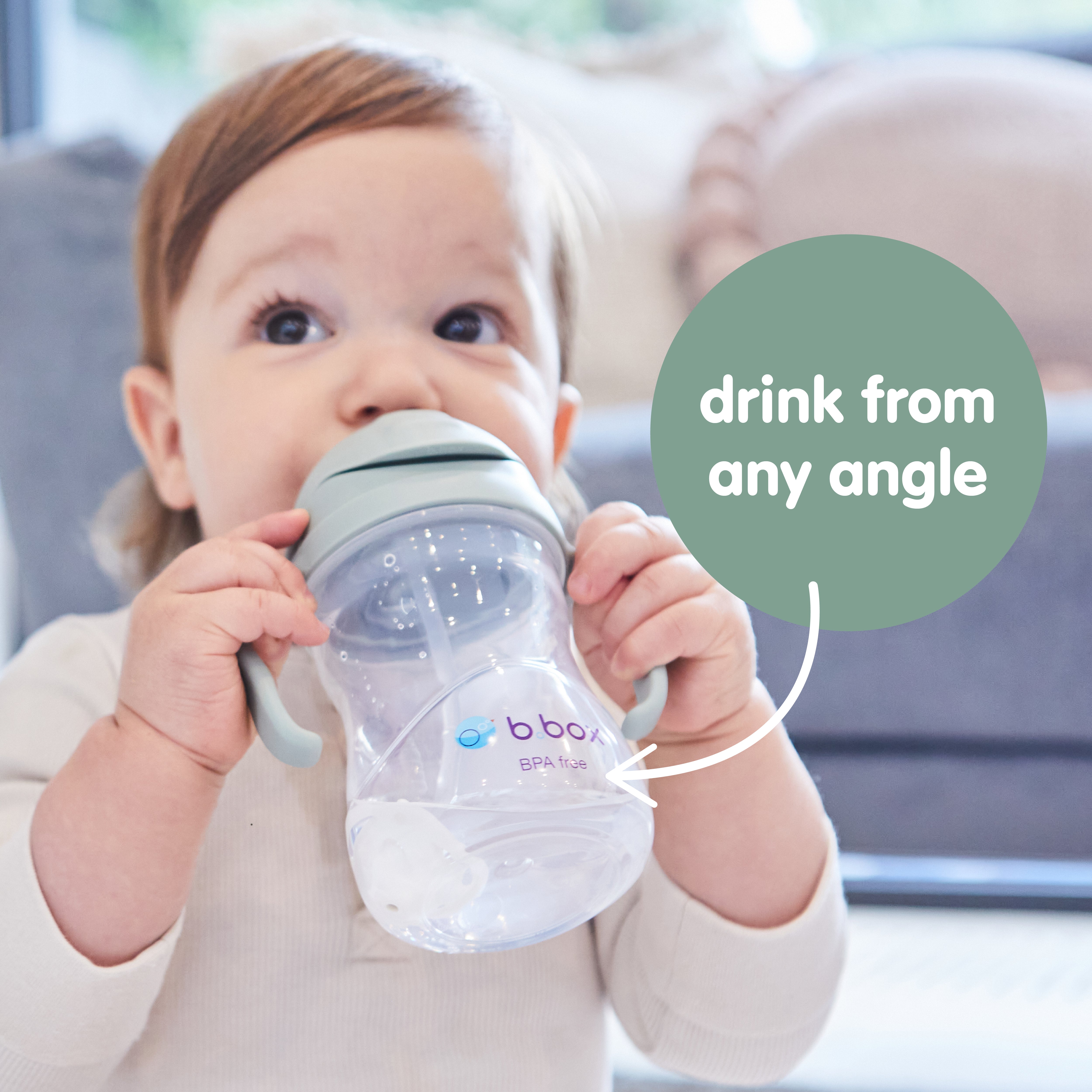 Our award-winning sippy cup features our innovative b.box weighted straw that moves with the liquid – whatever angle the cup is tilted. The straw has a unique two-way valve, ensuring easy drinking and no leaks, even with warm water.