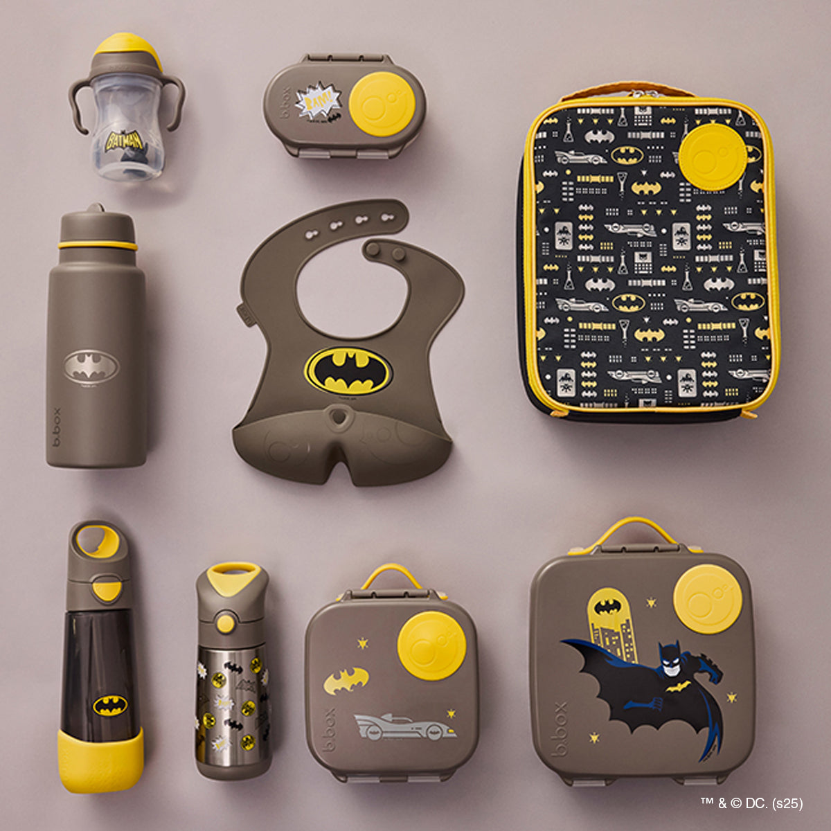 BAM! When lunch time needs a Super Hero, Batman saves the day – with these lunch and hydration accessories inspired by the Caped Crusader, kids will be powered up for the playground!
