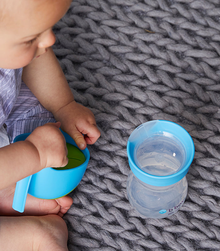 • Interchangeable base and lid – switch between the spout, sippy cup and training lids as your baby grows