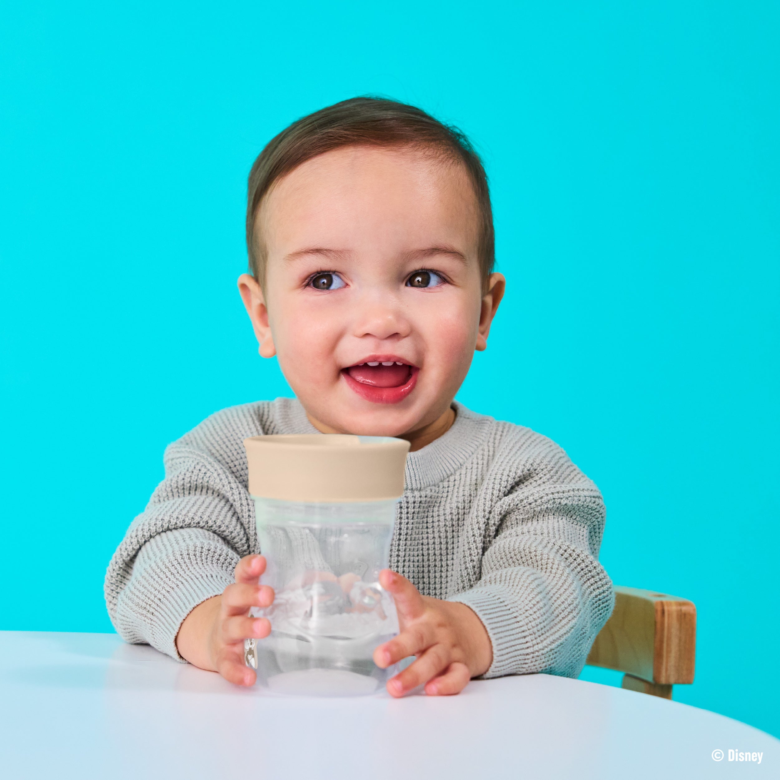- training lid 12m+ teaches kids how to drink from a cup, offering easy free flow drinking with a unique window lid.
