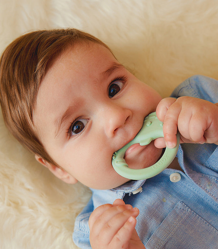 The Trio Teether offers a versatile, non-toxic solution for teething babies from 3 months and beyond. Featuring three textured teethers that can be used individually or together on a customisable ring for sensory development and soothing gum relief.